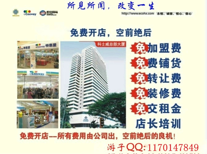杭州科士威Q1170147849杭州科士威实体店│杭州科士威旗舰店│杭州科士威形象店│杭州科士威官方店铺│杭州科士威店铺在哪里│杭州e科士威店铺是怎么样的模式?简单说:科士威连锁商店(网上加实体店铺)开放给予个人经销权,个人加入这个系统不论购买商品或推荐他人都有奖金,加入业主只需购买公司优惠配套产品,公司会赠送您经营权及国际行销网站,平面宣传刊物等。您一加入马上可以大盘商的价格选购商品,加上时间及