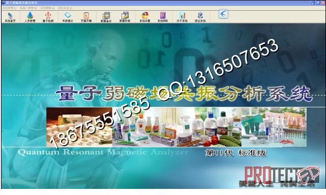 量子弱磁共振分析仪标准版开机界面量子仪标准版尺寸:31*22*12包装尺寸:37*27*17.5重量:2.5公斤升级要点:1.版本可用于WindowsXP/Vista/Windows7以及Windows2003/Windows2008等任何主流操作系统,支持各种台式机,笔记本,上网本。2.软件自动运行安装,无需再装驱动。3.报告总数增至21个,增加了内分泌、免疫、皮肤、乳腺、人体成分等报告,妇科等