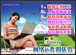 1、eCosway帮助你梦想成真17、eCosway让你做生命的主人2、eCosway为你找出无限可能18、eCosway让成功没上限,没有席位限制#Y“w“e:g!F|3p3`3、eCosway给你真正的立足点19、eCosway全球最大的eCosway市场即将开放4、eCosway是进化的连锁加盟事业20、eCosway是个弹性的行业5、eCosway掌握品牌和通路的主流21、eCosway让