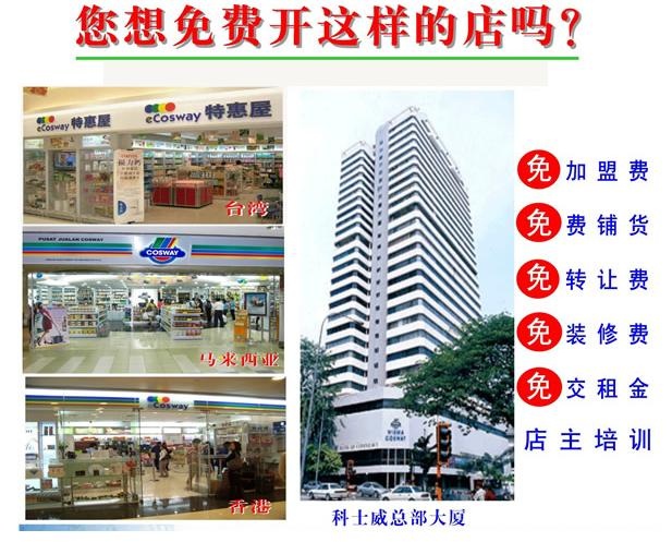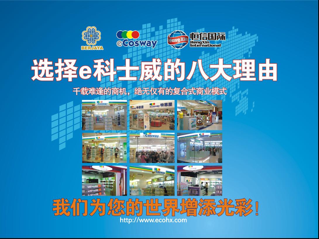 一、产品多,全球量贩式经营 eCosway科士威专门挑选全球各地荣获权威认证的优秀科研机构和厂家,与他们签订供销合同,产品质量获得长久保证,质量好并不够,质量上乘的才能出现在eCosway科士威商场清单内。 二、价格合理,适合任何人消费 eCosway科士威提供的产品都是以最低的出厂价直接提供给全球消费者,同类型同品牌的产品都要比市面上的售价低20%-60%甚至更多。 三、卖最需要的产品才