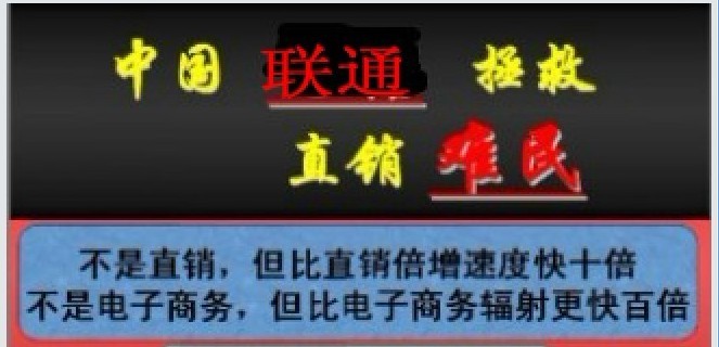 赞如果你正在寻找机会,欢迎了解!它是一个神奇的魔瓶一样,可以满足你的诸多愿望!合作愉快!咨询QQ:274530566咨询电话:联通3G号:18623528532了解联通项目可在百度搜索:联通3G网商松山最先进的制度打破传统直销的缺陷;一、解决了双轨制大象腿没有收入的问题二、解决了级差制平级间没有收入的问题三、解决了矩阵制仅深度没有收入的问题四、解决了出局制无延续没有收入的问题五、解决了一条线养懒汉